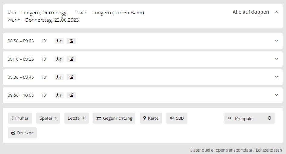 Reiseroute ab Zürich HB, 21.06.2023 Mittwoch